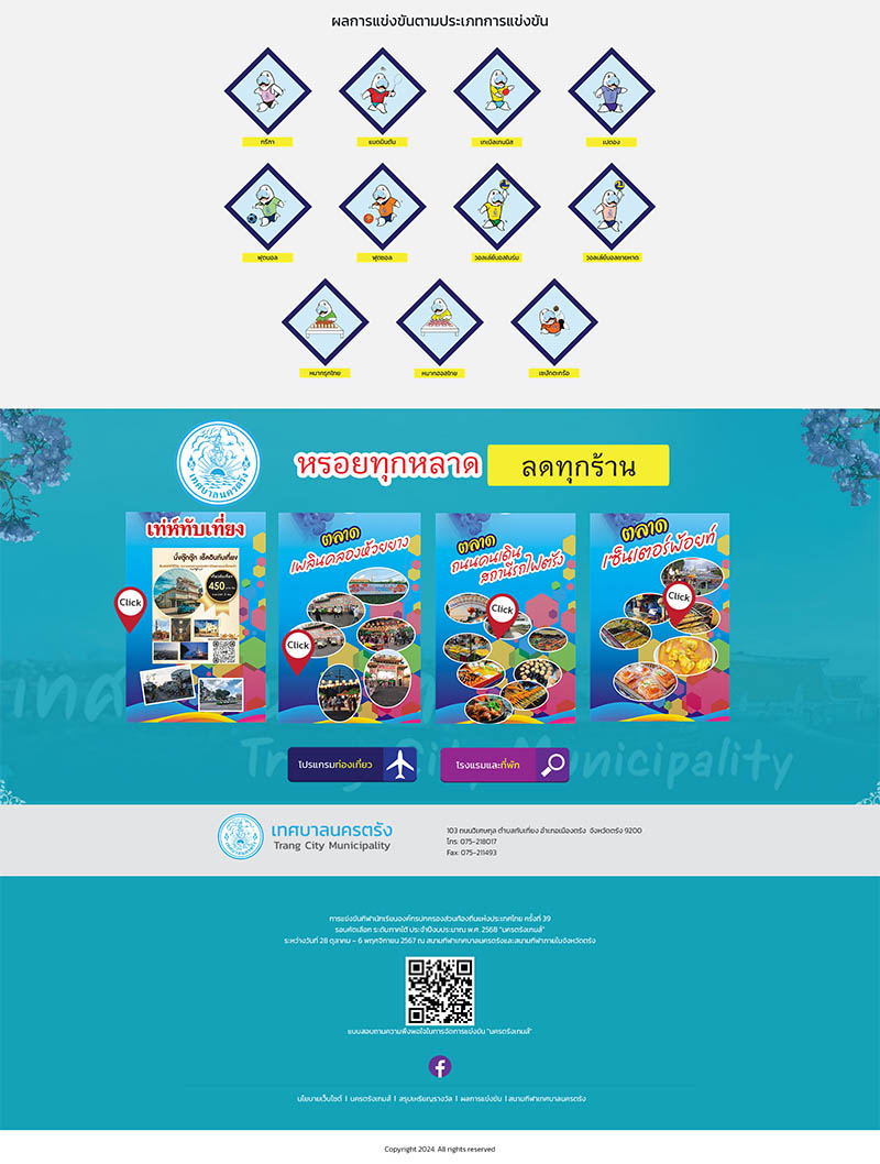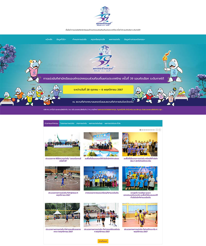 นครตรังเกมส์ การแข่งขันกีฬานักเรียนองค์กรปกครองส่วนท้องถิ่นแห่งประเทศไทย ครั้งที่ 39 รอบคัดเลือก ระดับภาคใต้ ประจำปีงบประมาณ พ.ศ. 2568 “นครตรังเกมส์” ระหว่างวันที่ 28 ตุลาคม – 6 พฤศจิกายน 2567 ณ สนามกีฬาเทศบาลนครตรังและสนามกีฬาภายในจังหวัดตรัง