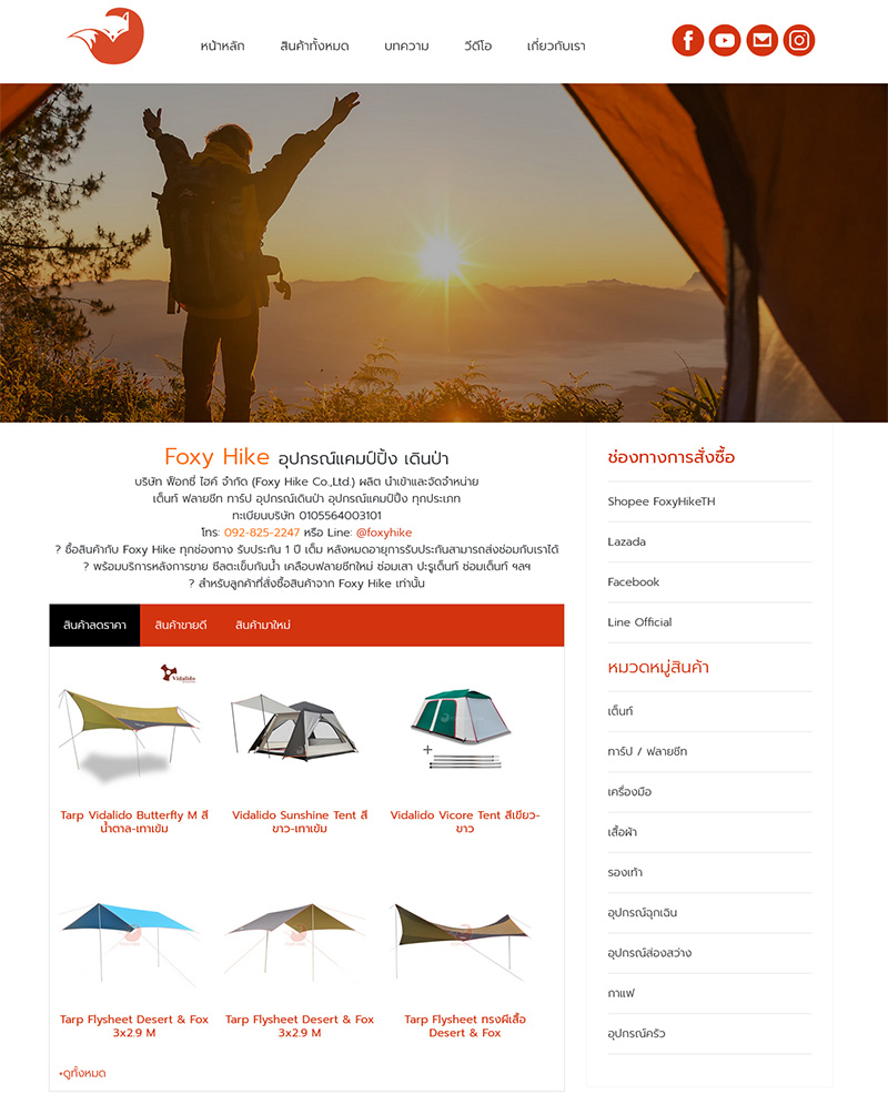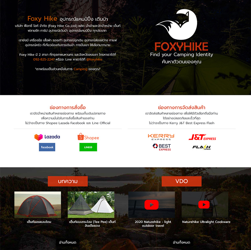 Foxy Hike อุปกรณ์แคมป์ปิ้ง เดินป่า ผลิต นำเข้าและจัดจำหน่าย เต็นท์ ฟลายชีท ทาร์ป อุปกรณ์เดินป่า อุปกรณ์แคมป์ปิ้ง ทุกประเภท